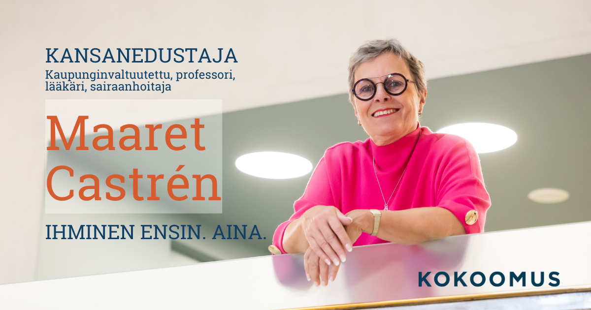 ”Maaretin vankka elämänkokemus, laaja-alainen työura ja monipuolinen asiantuntijuus tekevät hänestä loistavan päättäjän. Maaret on aina ihmisen puolella, myös Sinun!”