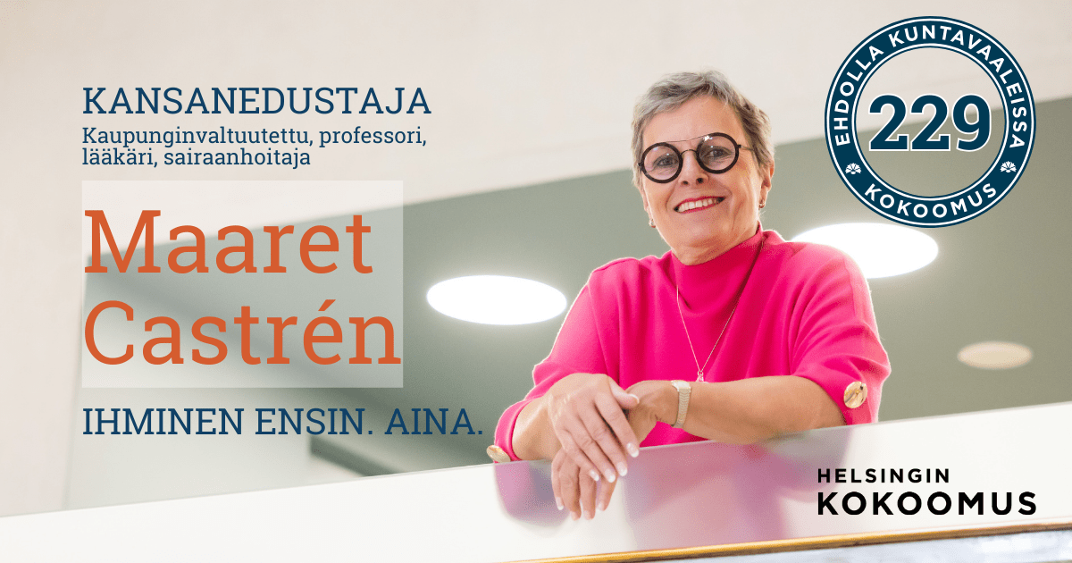 Nyt haen toista kautta kaupunginvaltuustoon. Tiedän jo nyt kokemuksesta, että Helsingissä voi aivan erinomaisesti yhdistää kansanedustajan ja valtuutetun työt. Itse asiassa olen varma, että olen parempi kummassakin tehtävässä juuri sen takia, että olen myös toisessa tehtävässä. Niin hyvin nämä tehtävät tukevat ja täydentävät toisiaan ja varmistavat tehokkaan asioiden hoitamisen mahdollisuuden, kun tietoa on sekä kaupungin asioista, että eduskunnan tapahtumista.
