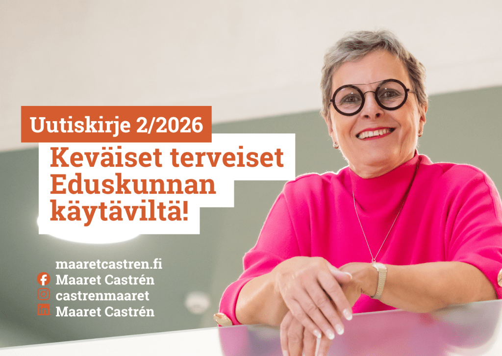 Maaliskuu on ollut täynnä naisasiaa, ja se on hyvä! Naistenpäivänä vierailimme naiskansanedustajien kanssa Suomen Yrittäjien tilaisuudessa kuulemassa Reloven yrittäjä Noora Hautakankaan urasta yrittäjänä. Meille päättäjille tuli kolme hyvää neuvoa: hyvinvointialueiden hankinnoissa pienyrittäjät huomioon, tukea ensimmäisen työntekijän palkkaamiseen sekä oikeudenmukaisempi perhevapaakustannusten jako.